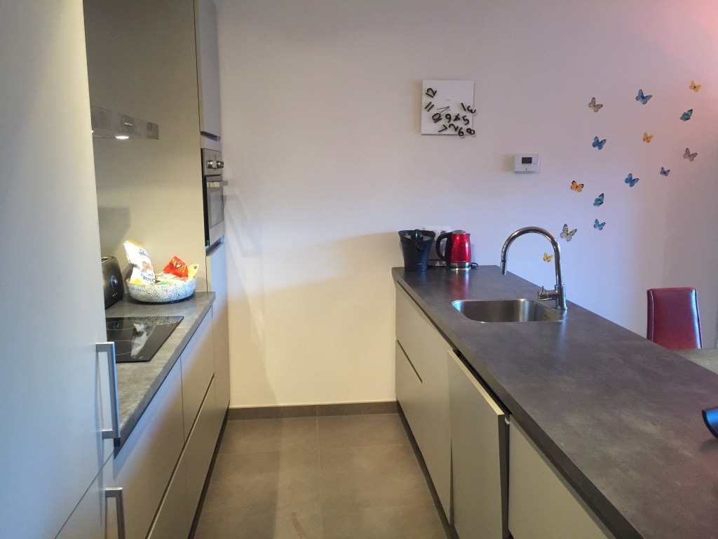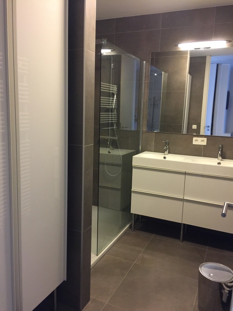 Huurprijs: 990 EUR/maand (INCLUSIEF ondergrondse parking + kelder) + 100 EUR/maand (gemeenschappelijke lasten).