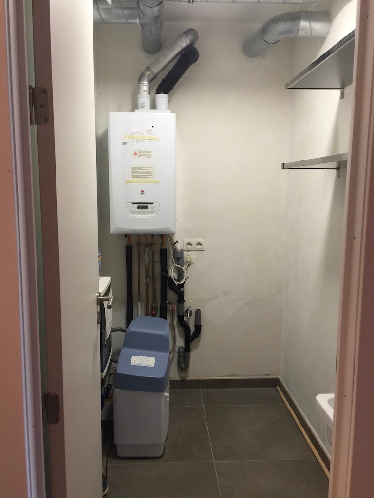 Centrale verwarming op gas. Individuele tellers voor water, gas en elektriciteit.