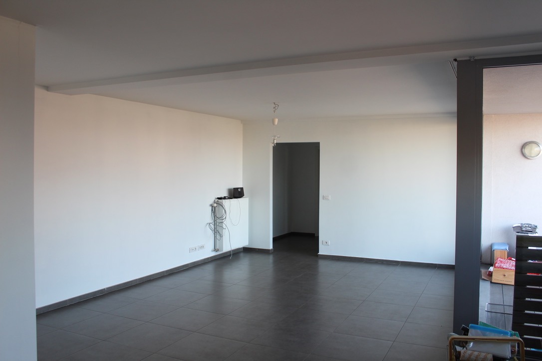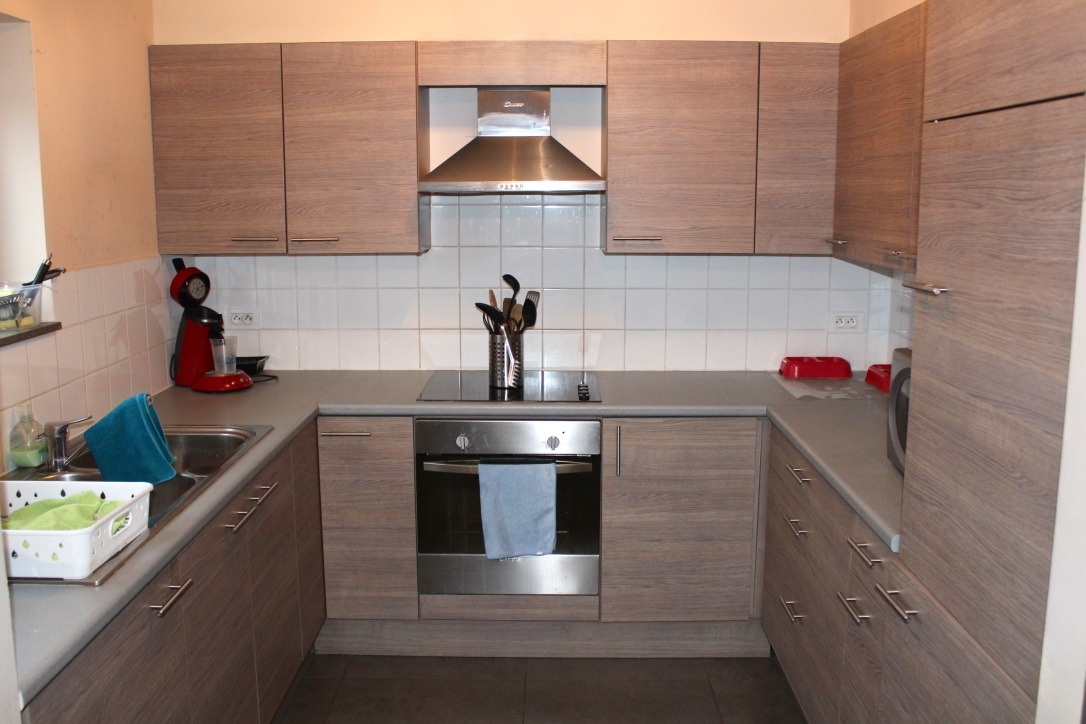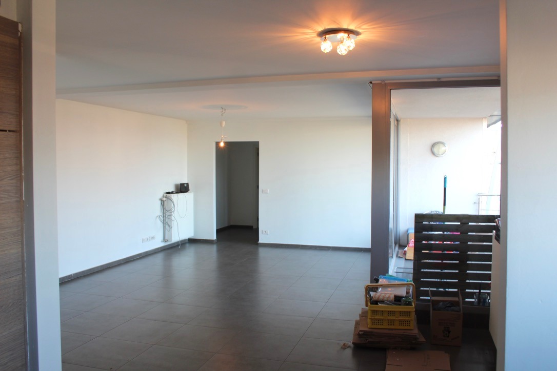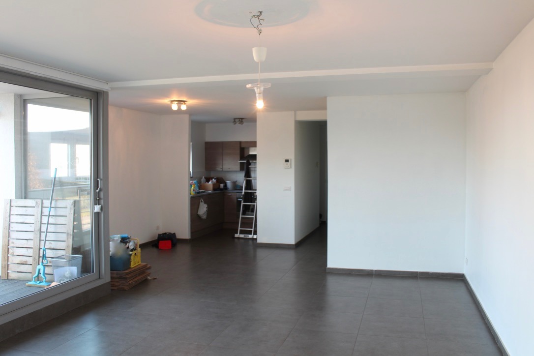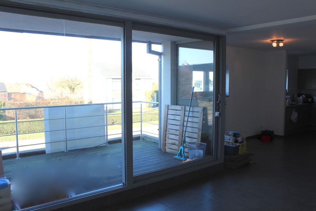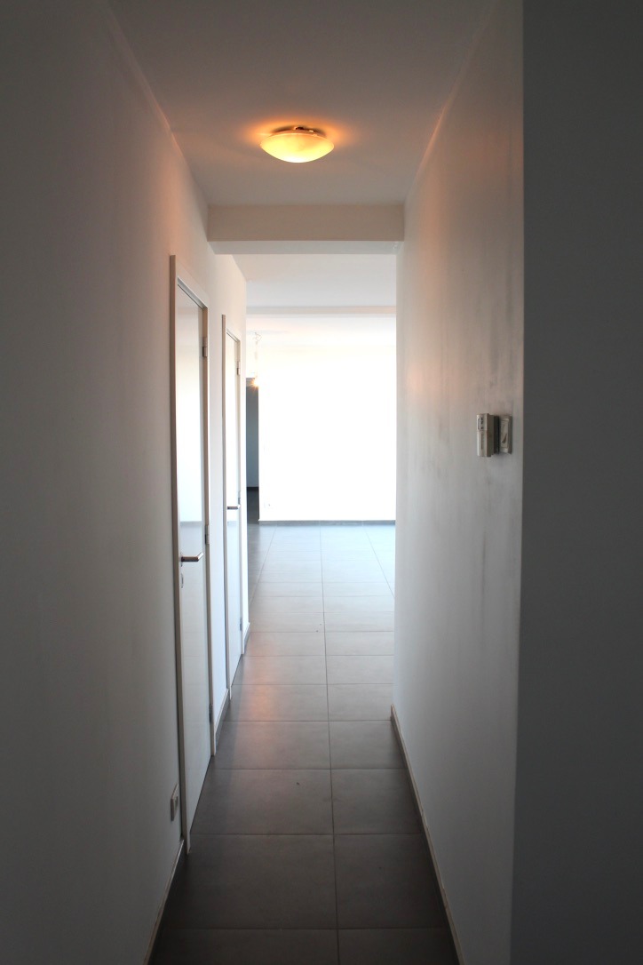 Dit appartement is gelegen aan een invalsweg richting Brussel, en bevindt zich op de 1ste verdieping van een recent gebouw (2005). Het is ingedeeld als volgt: