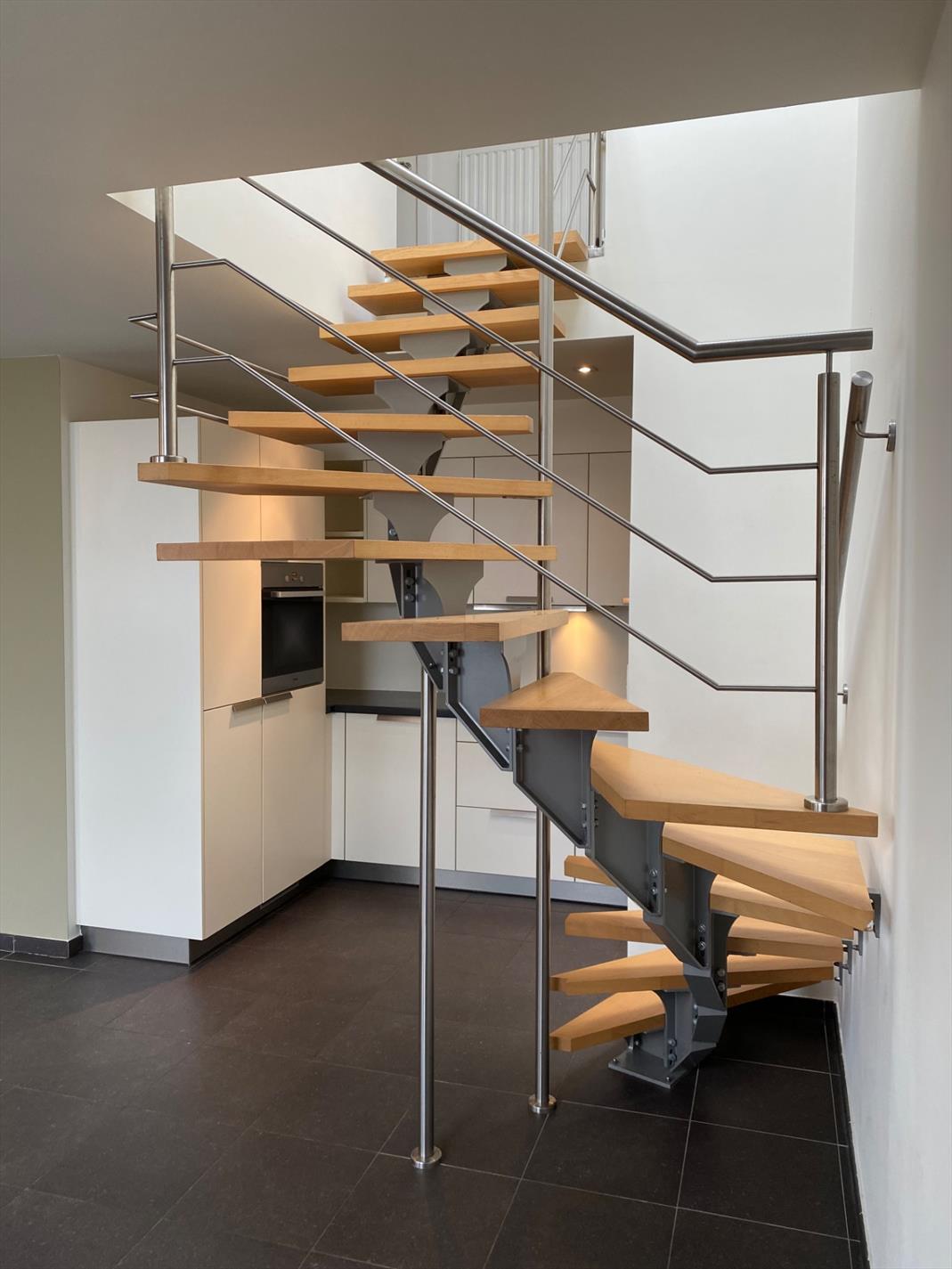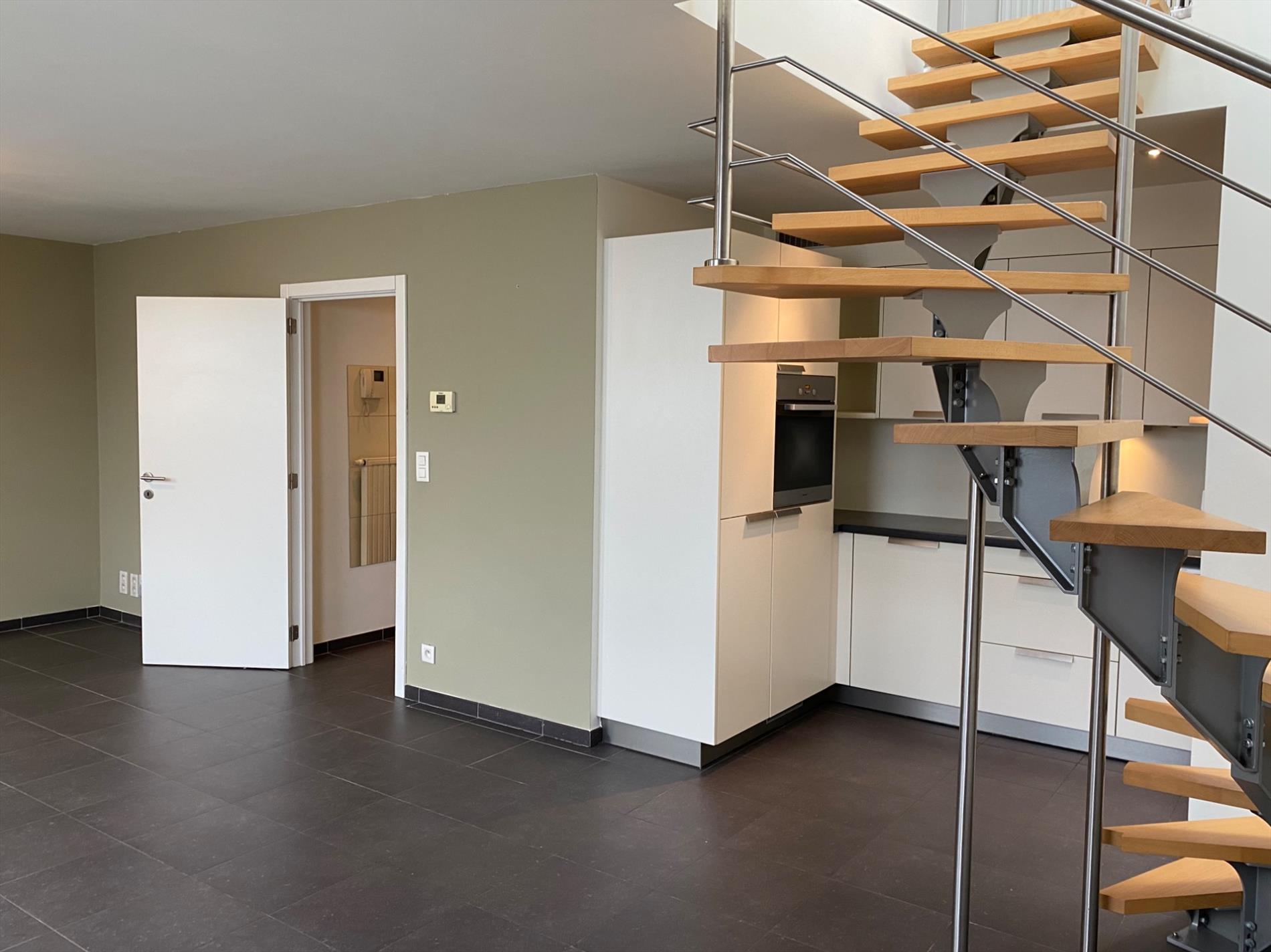 Op de 3de verdieping: inkomhal met vestiaire, apart toilet, leefruimte, keuken uitgerust met zeer degelijke toestellen. 2 slaapkamers, badkamer (met ligbad en inloopdouche), en terras op de 4de verdieping. Volledige wand met ingemaakte kasten in de grootste slaapkamer.