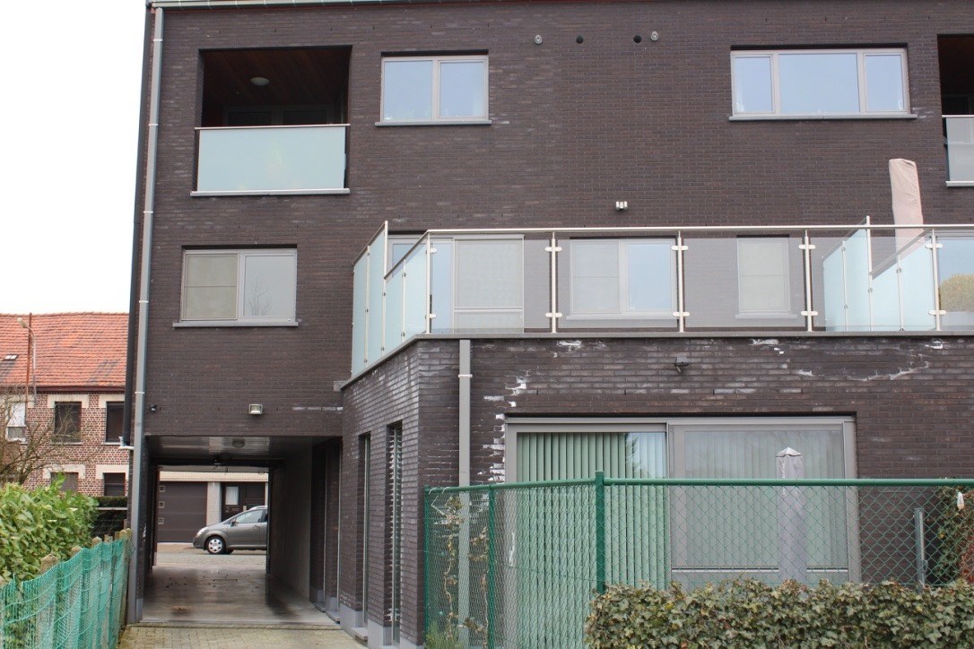 Privé-carport en gemeenschappelijke fietsenberging achteraan het gebouw, via toegangspoort te bereiken.