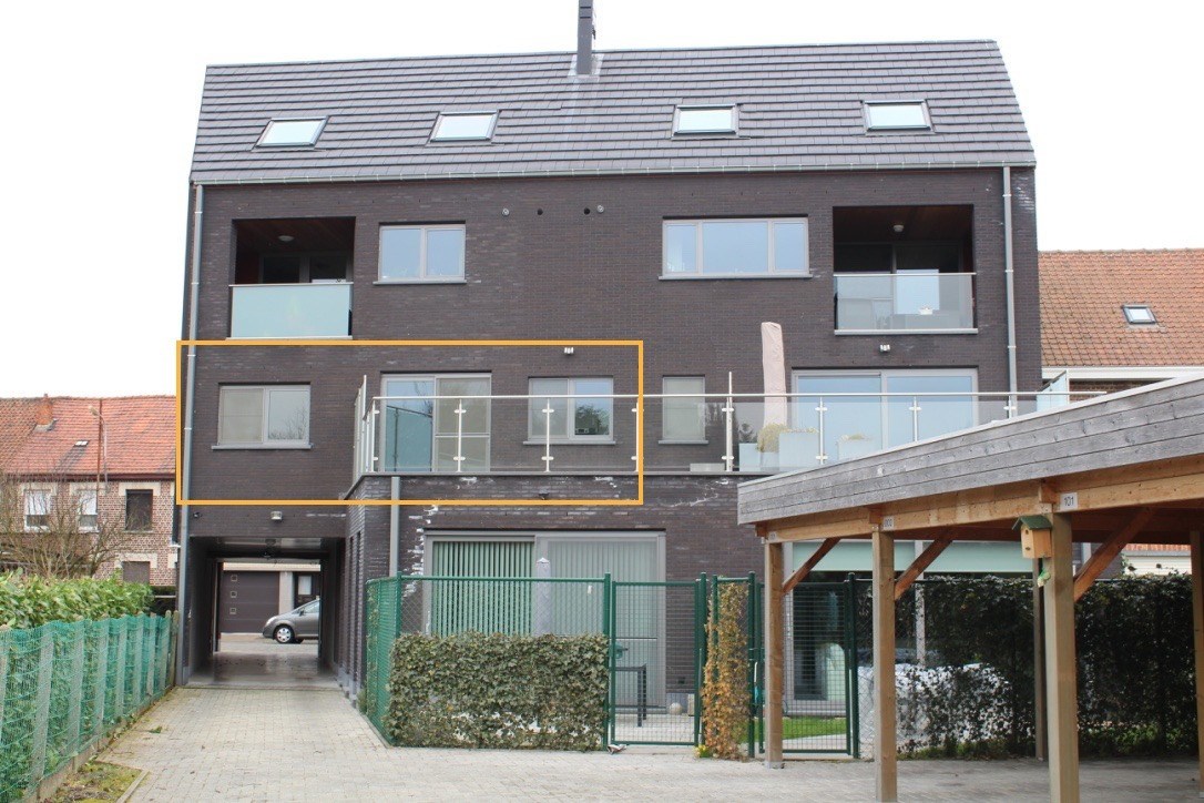 Het appartement op de 1ste verdieping en is ingedeeld als volgt: leefruimte/eetplaats met toegang tot zeer groot terras (24m2, oostelijk georiënteerd), open geïnstalleerde keuken (combi-oven, koelkast, kookplaat, dampkap, en vaatwasmachine van Bosch), slaapkamer (14,5m2), badkamer (lavabo, douche en toilet) en berging (aansluiting wasmachine).