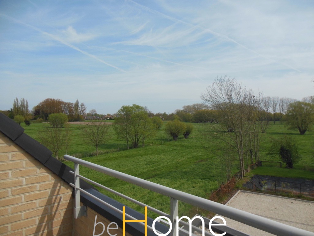 2de verdieping: inkom, leefruimte/eetplaats met toegang tot zonnig terras van 6,5m2. Zeer mooi zicht op groene landelijke omgeving. Open en geïnstalleerde keuken (kookplaat, dampkap, oven, vaatwasmachine, koelkast), ruime berging (installaties – aansluiting wasmachine) en toilet.