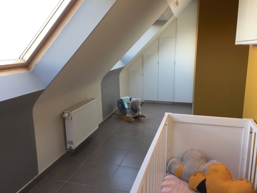 4de verdieping: traphal, 2 slaapkamers, badkamer (ligbad, douche, dubbele lavabo en toilet) en tweede berging. 2de slaapkamer afgewerkt met degelijke ingemaakte kasten. Veel bergruimte.