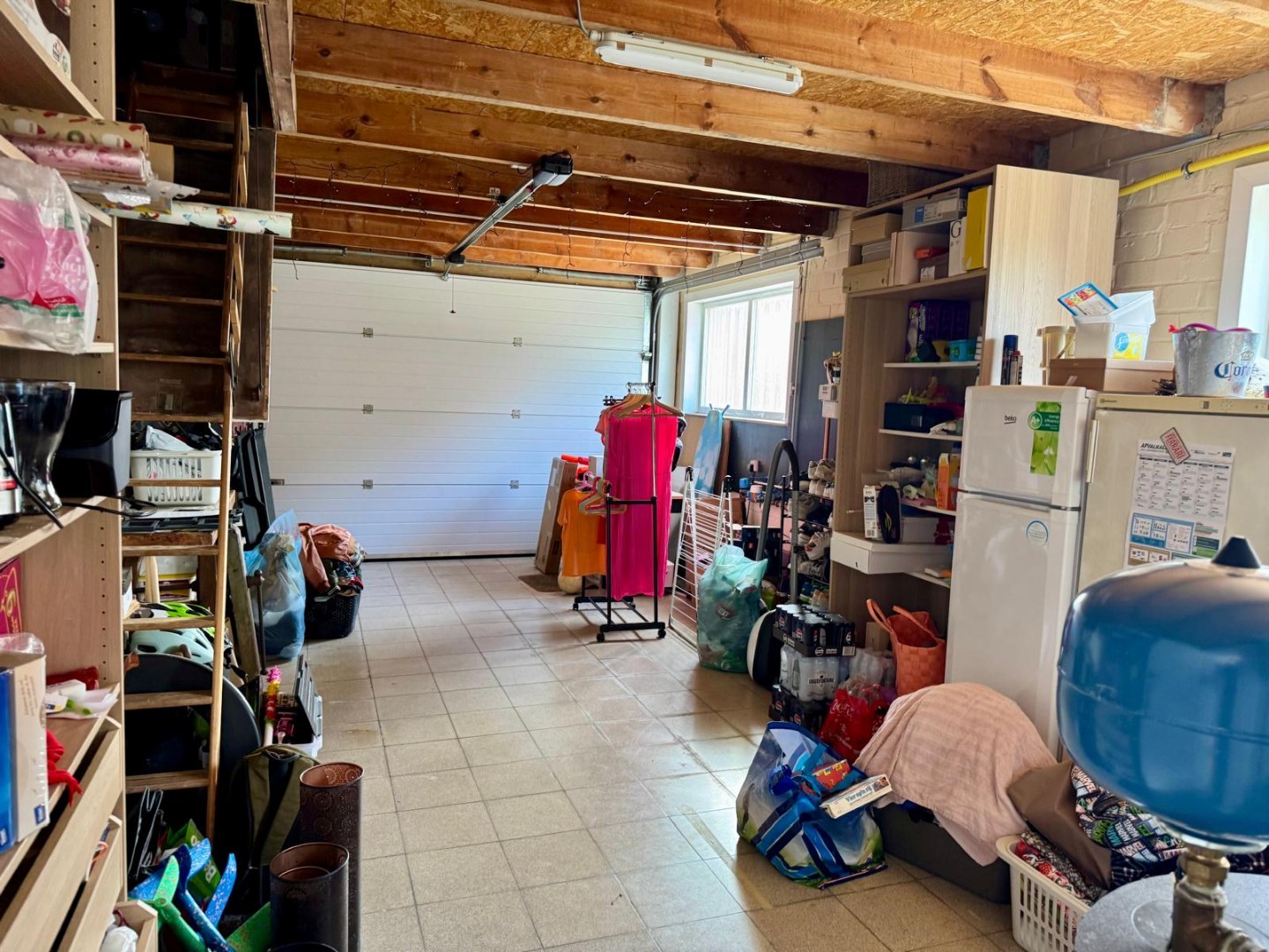 GV: inkomhal, ruime en lichtrijke leefruimte met open keuken, badkamer, berging, gezellig terras achteraan, lange oprit naast de woning, parkeerplaats vooraan én een garage;