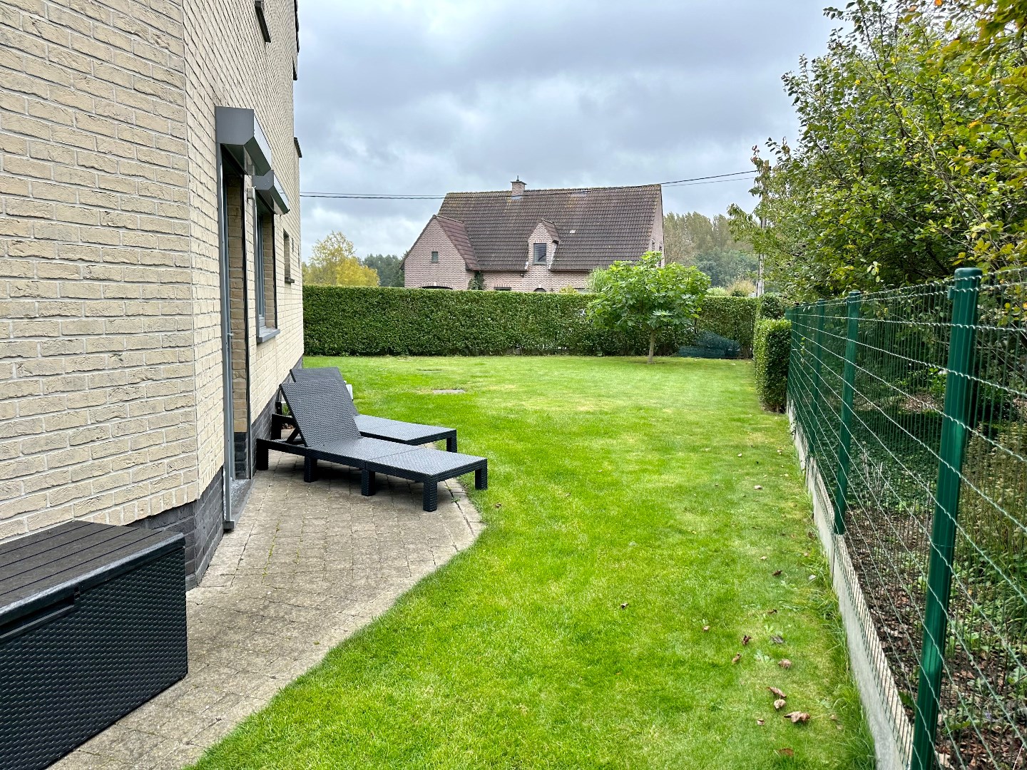 Gelijkvloers: inkom, vestiaire, apart toilet, wasruimte, open keuken (gaskookplaat, dampkap, oven, koelkast en vaatwasmachine), leefruimte/eetplaats met toegang tot het terras en de tuin.