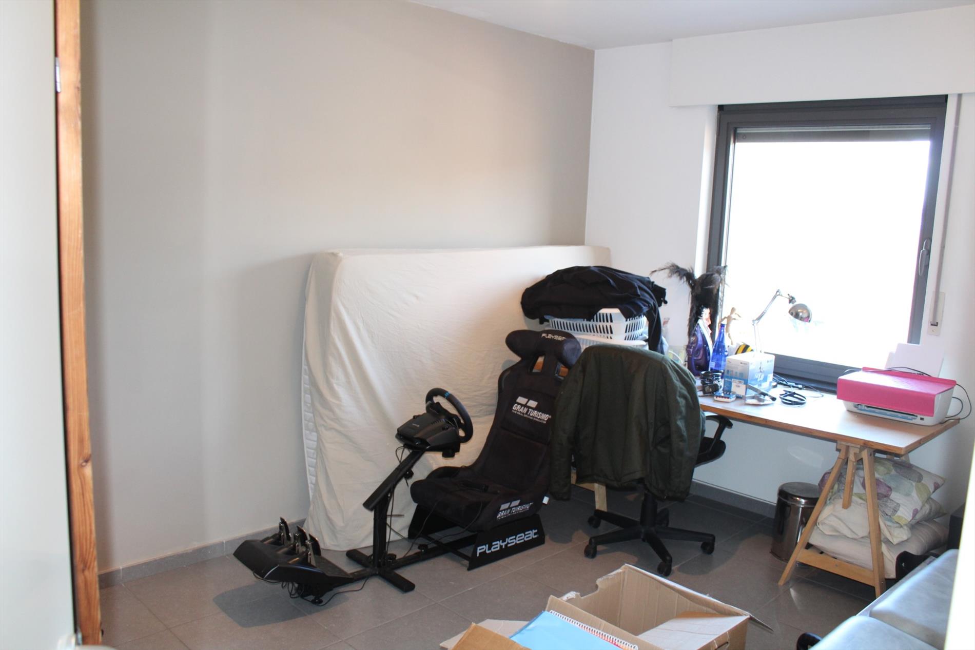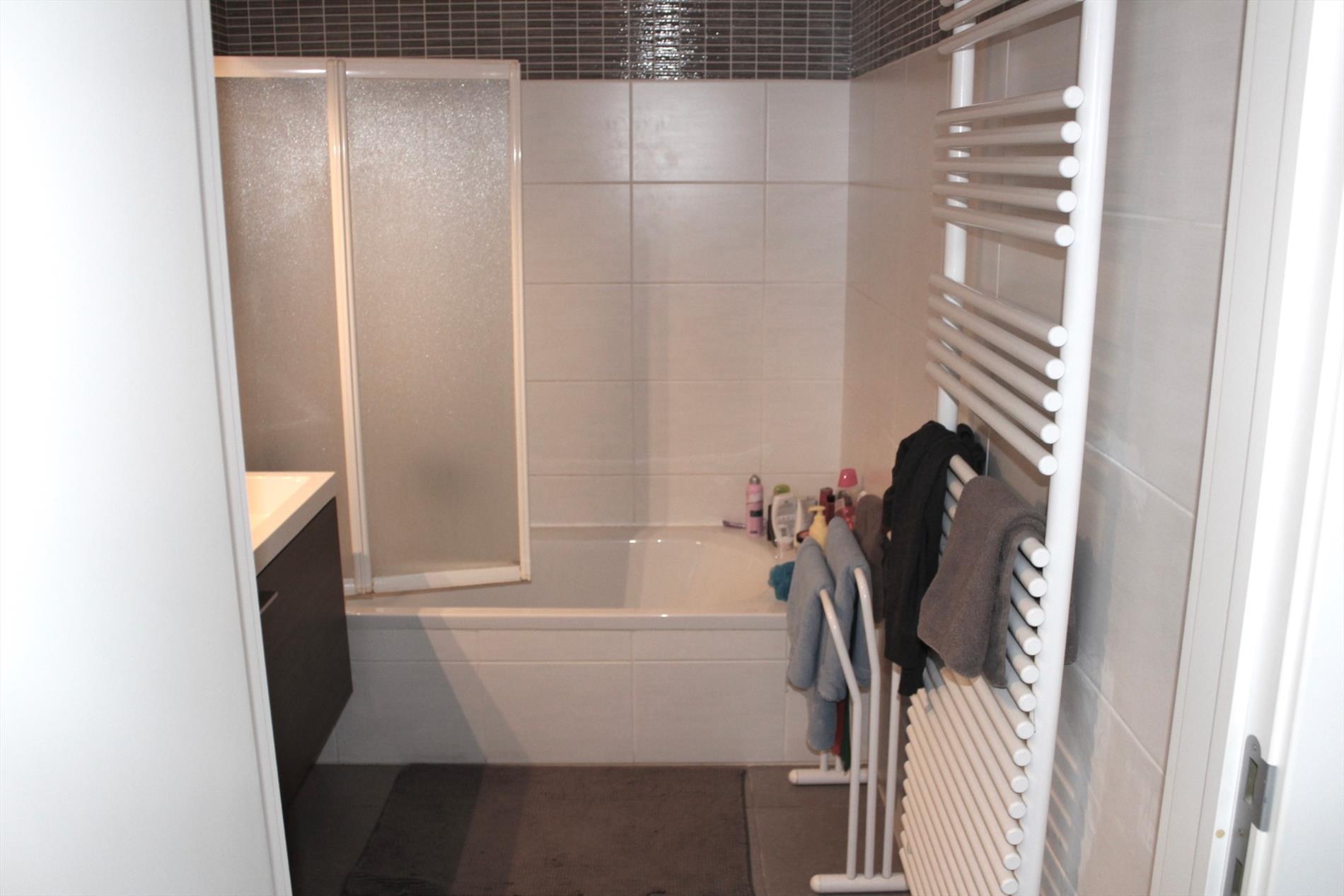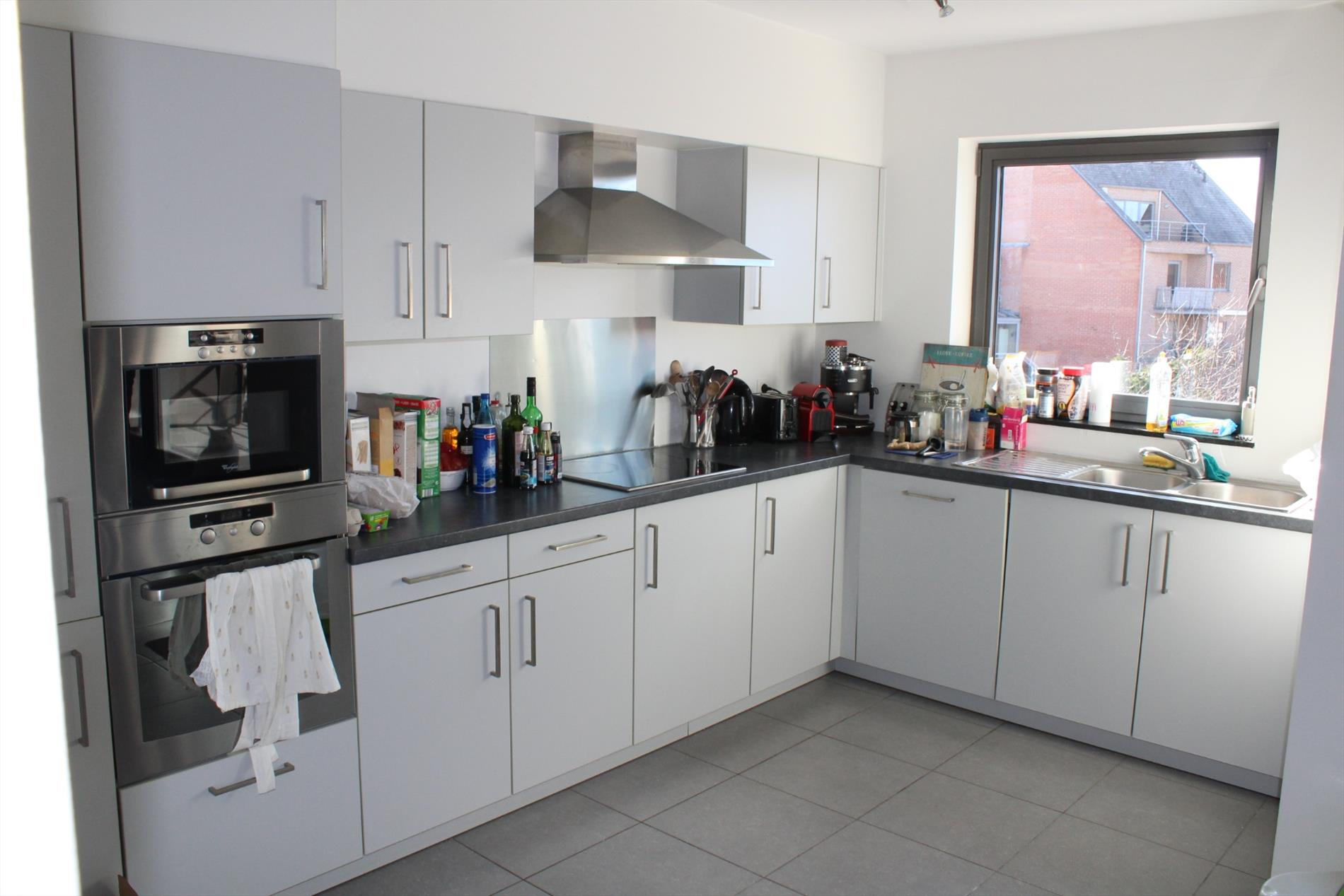 inkomhal, leefruimte/eetplaats met mooi terras (Z-ZW!), open en volledig geïnstalleerde keuken (kookplaat met dampkap, oven, microgolfoven, vaatwasmachine, koelkast, diepvriezer), aansluitend berging, 2 slaapkamers (14,7m2 en 12,6m2), badkamer (dubbele lavabo, ligbad/douche), apart toilet.