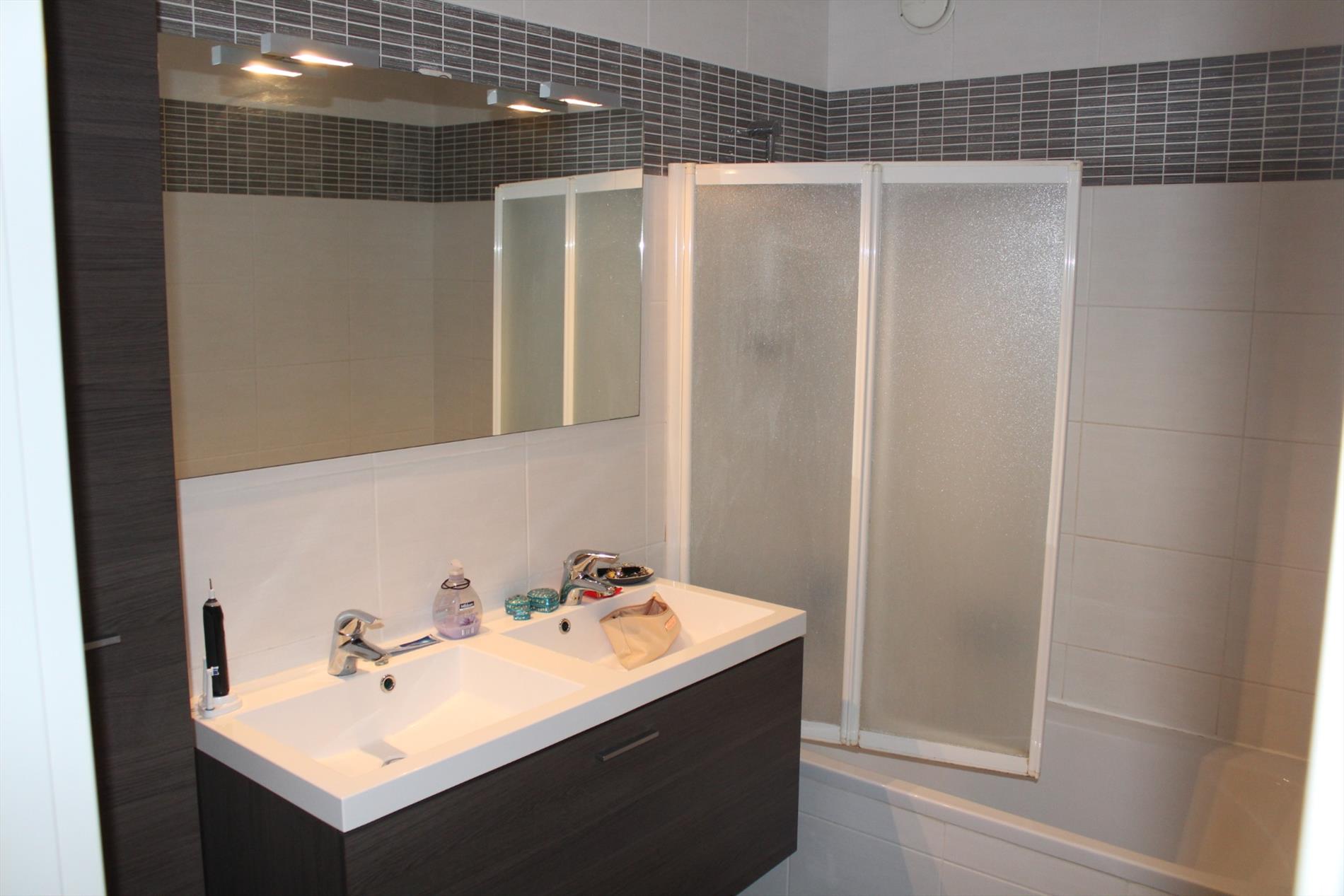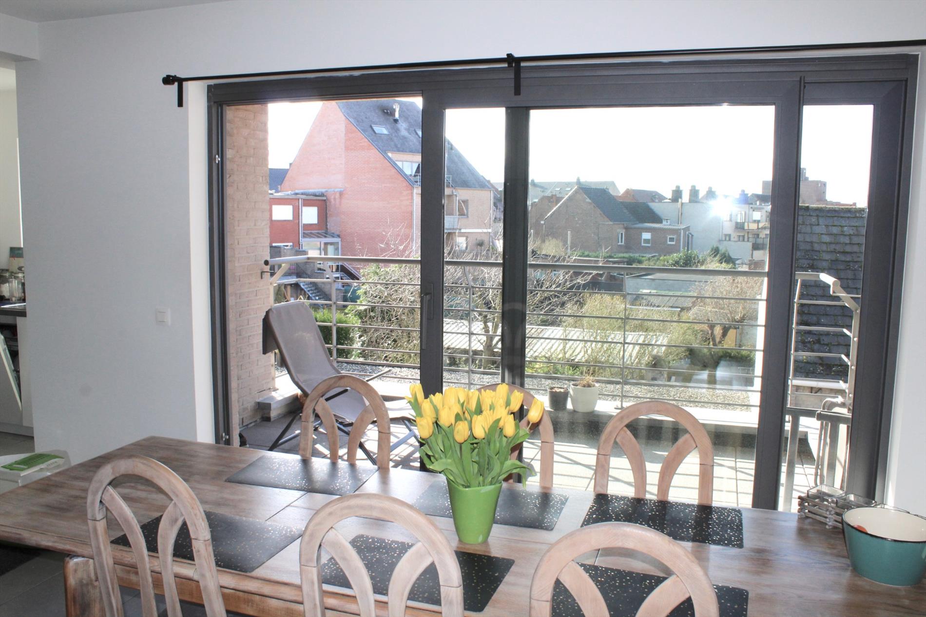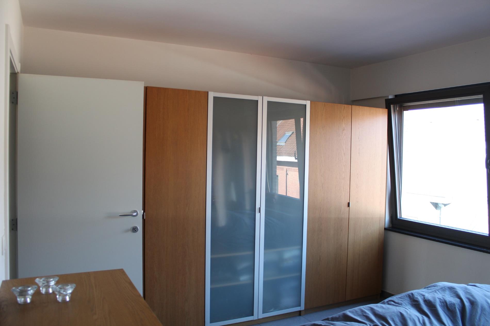 inkomhal, leefruimte/eetplaats met mooi terras (Z-ZW!), open en volledig geïnstalleerde keuken (kookplaat met dampkap, oven, microgolfoven, vaatwasmachine, koelkast, diepvriezer), aansluitend berging, 2 slaapkamers (14,7m2 en 12,6m2), badkamer (dubbele lavabo, ligbad/douche), apart toilet.