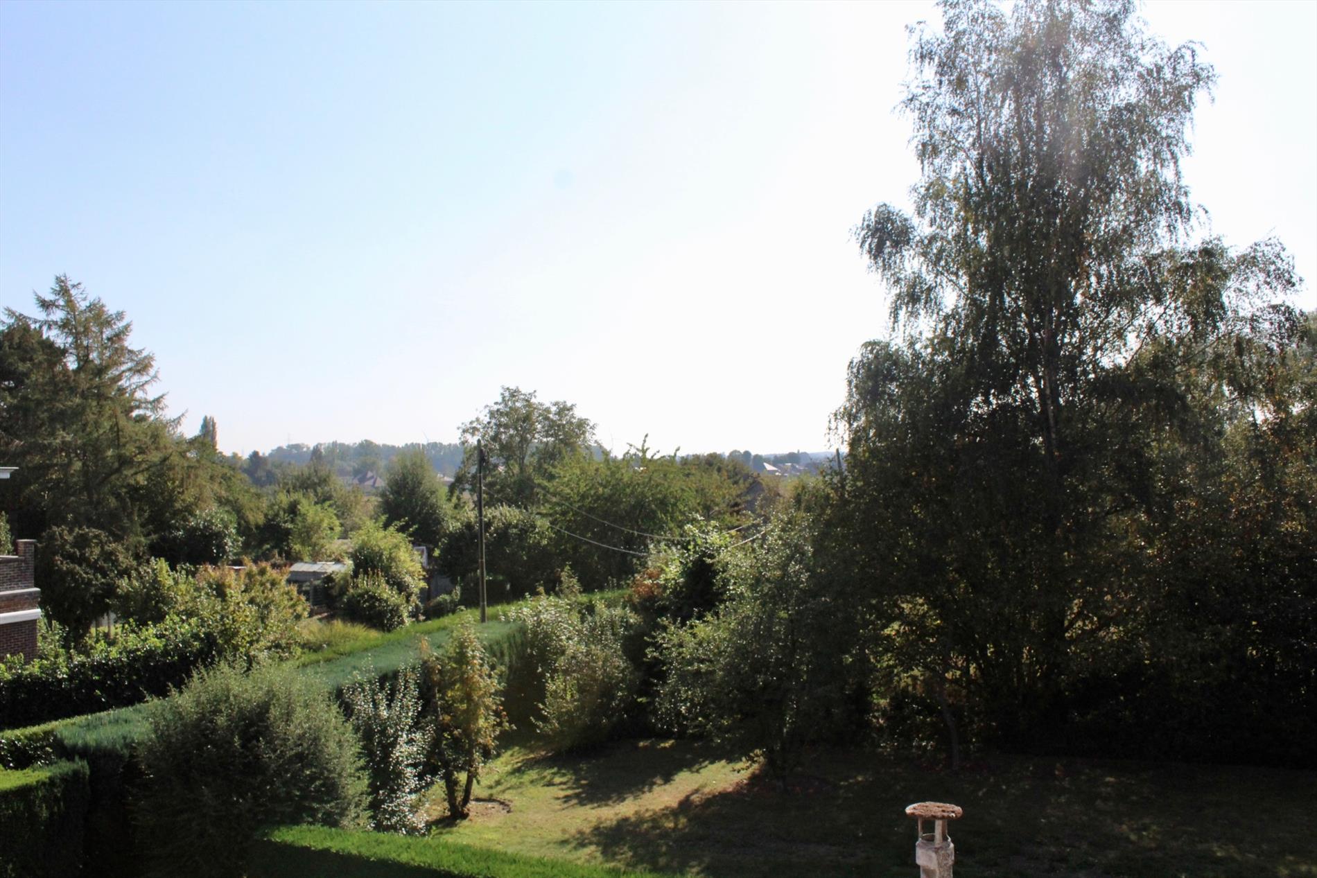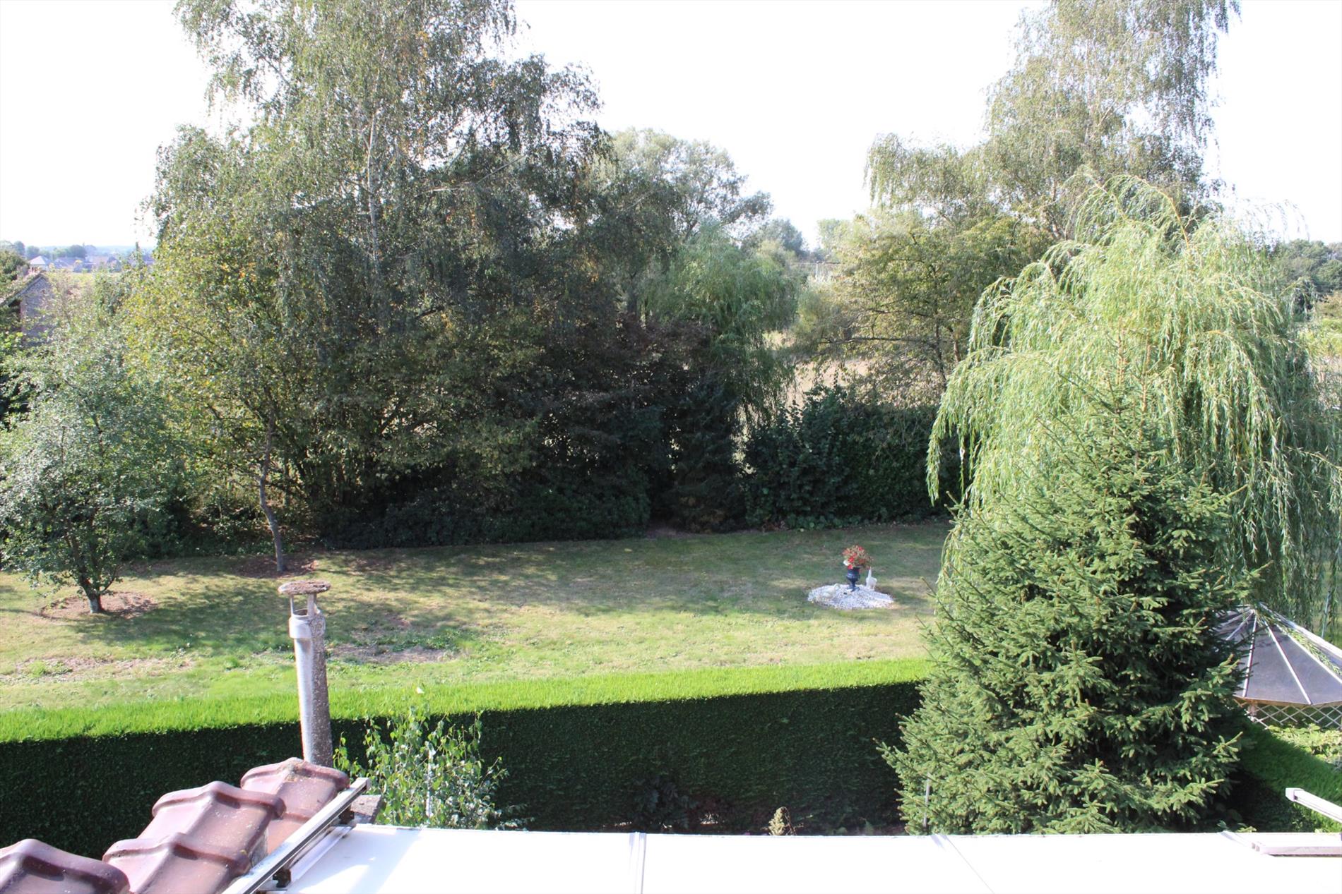 Achteraan prachtig zicht op groen, vooraan open ruimte (pleintje).