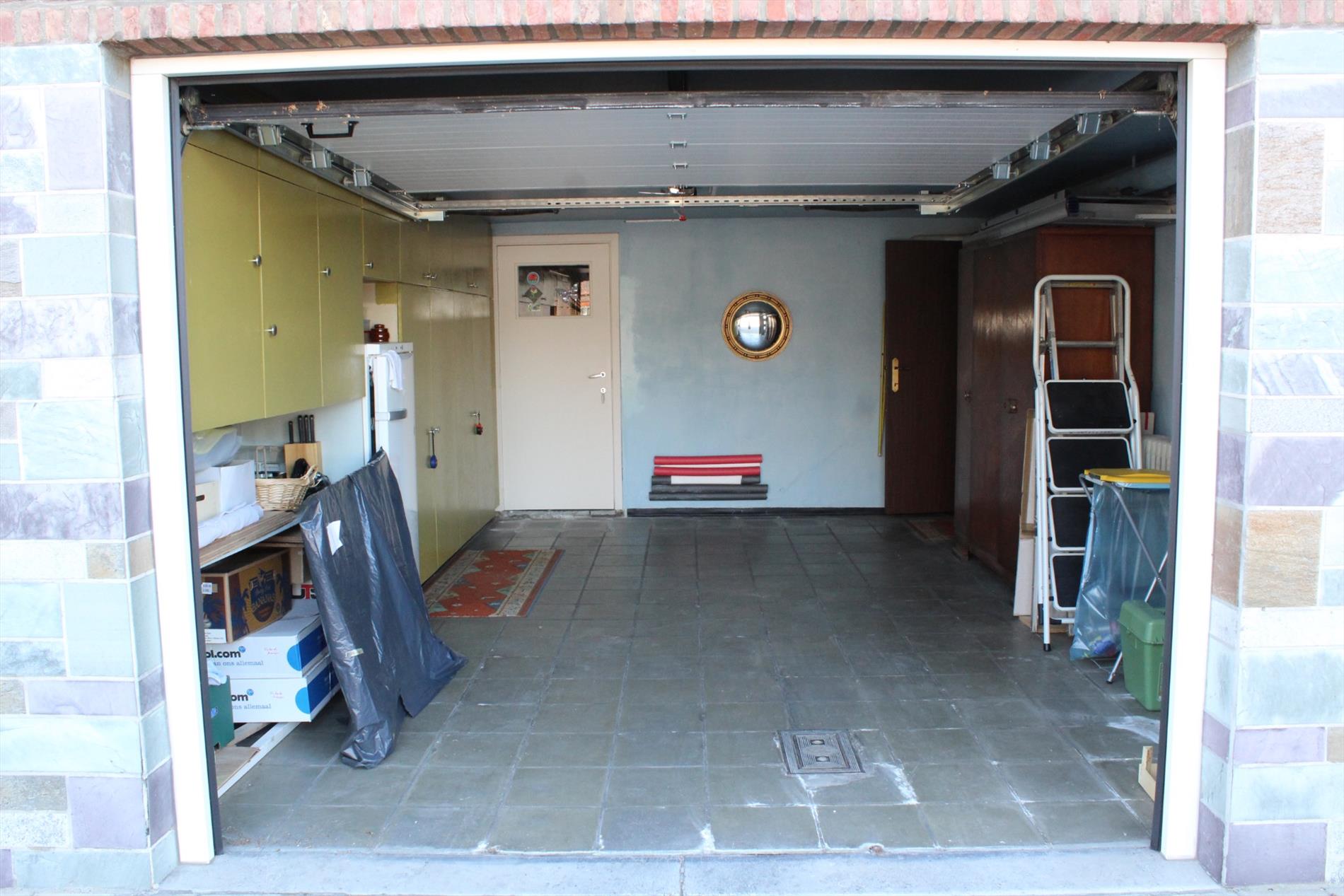 Gelijkvloers: inkomhal, garage met sectionale poort, 2 bergruimtes, terras.