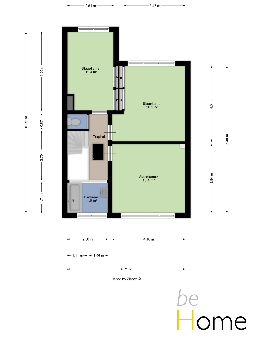 | Slaapkamers: | 3 (16.4 m², 16.1 m², 11.4 m²) |