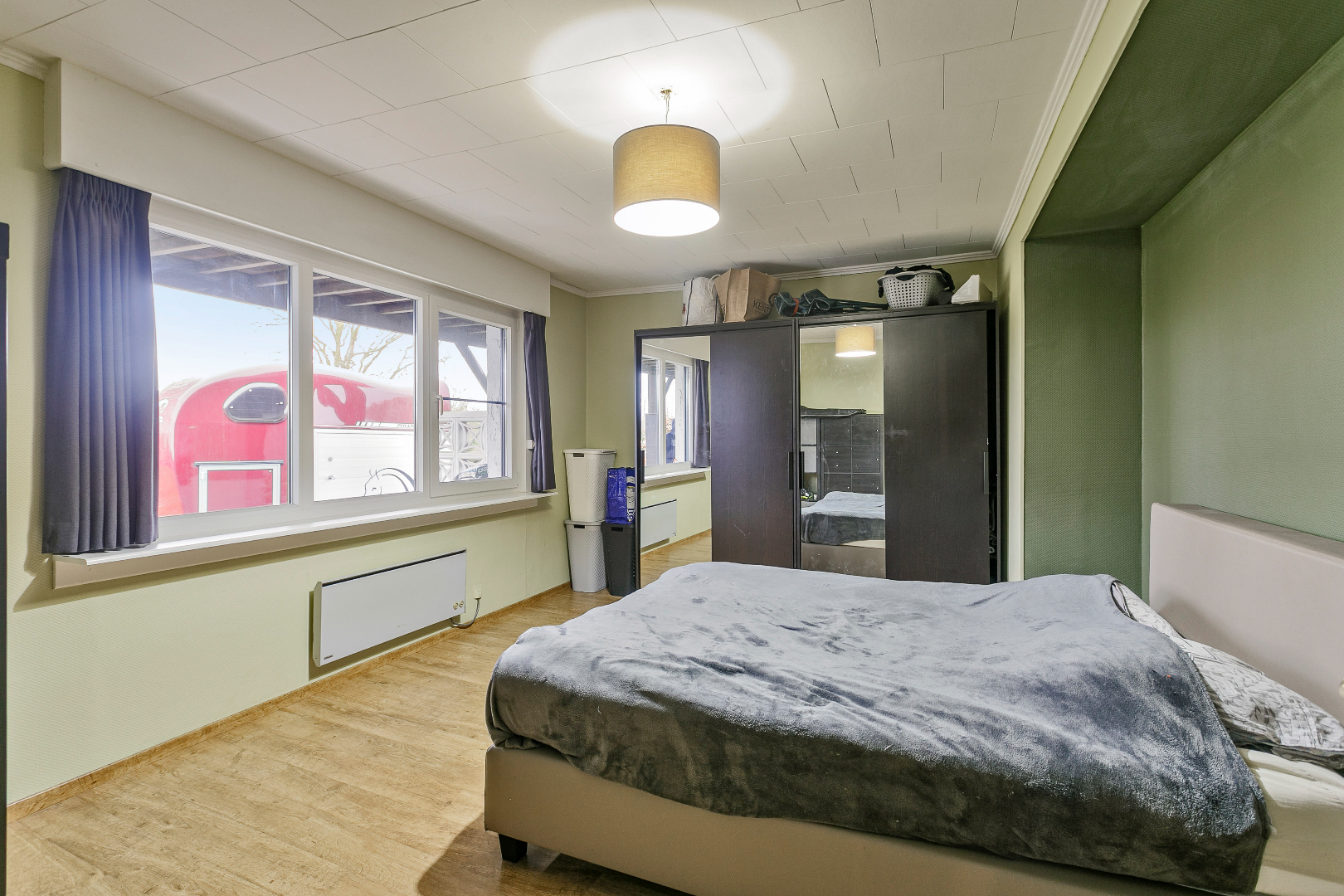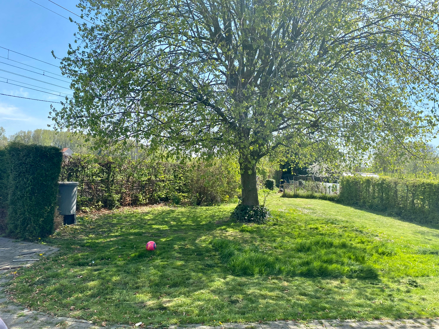 Deze bungalow is gelegen aan de spoorweg, maar ver verwijderd van de straat, waardoor je er kan genieten van de rust in de groene omgeving.
