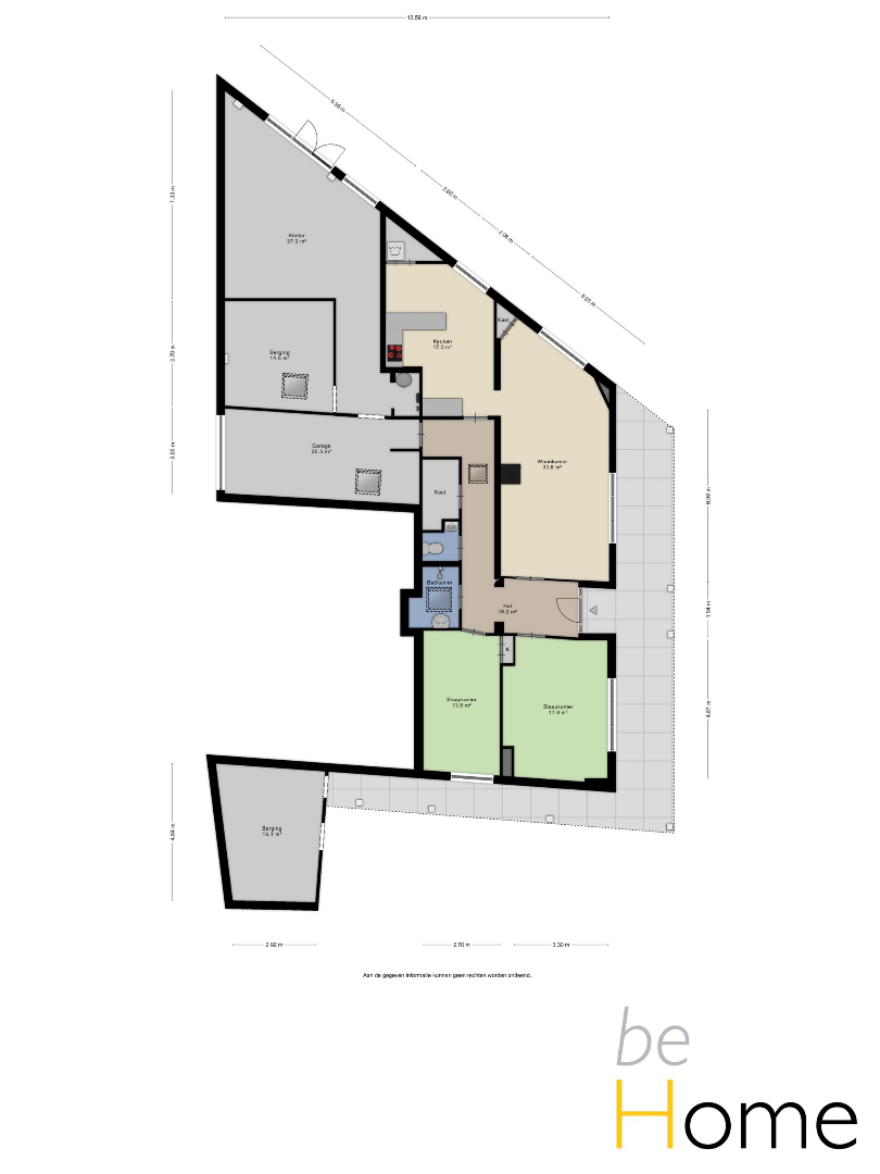 Ze is ingedeeld als volgt: inkomhal, woonkamer, aparte keuken met berging, 2 slaapkamers (17,8m2 en 13,5m2), badkamer en toilet.