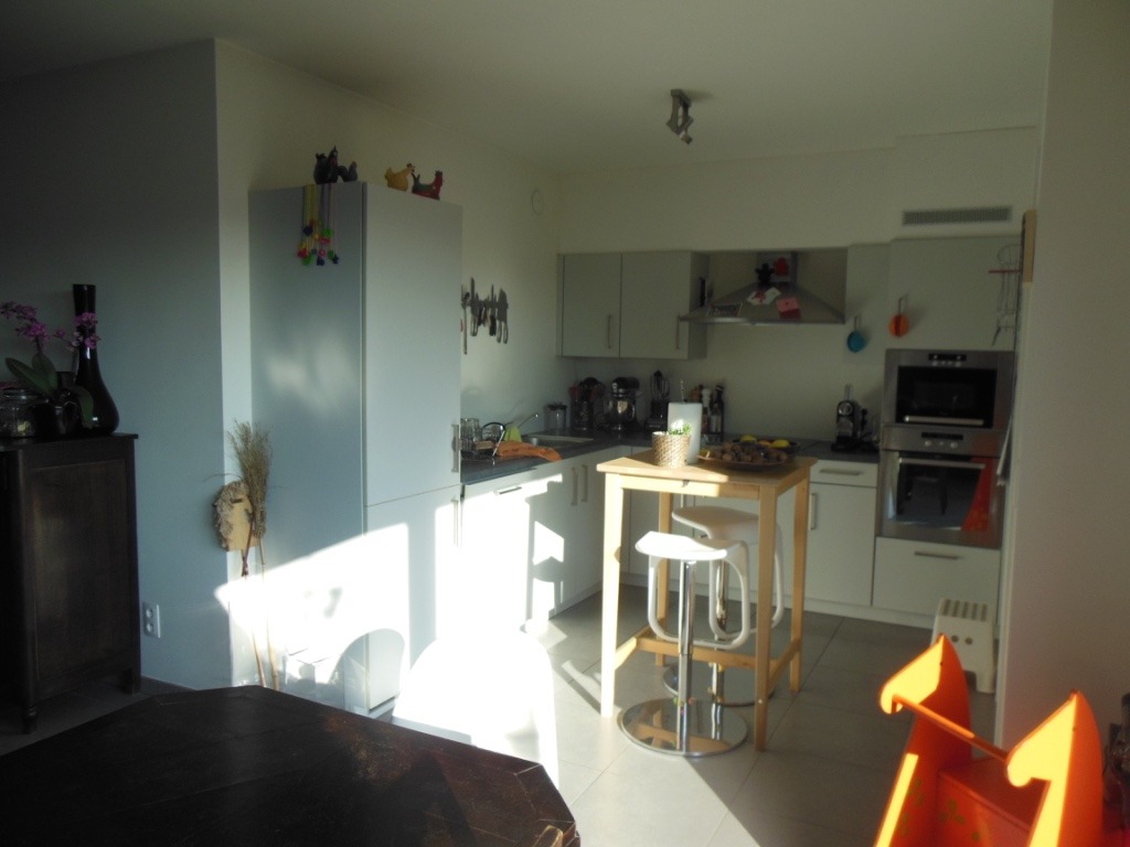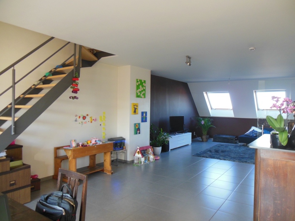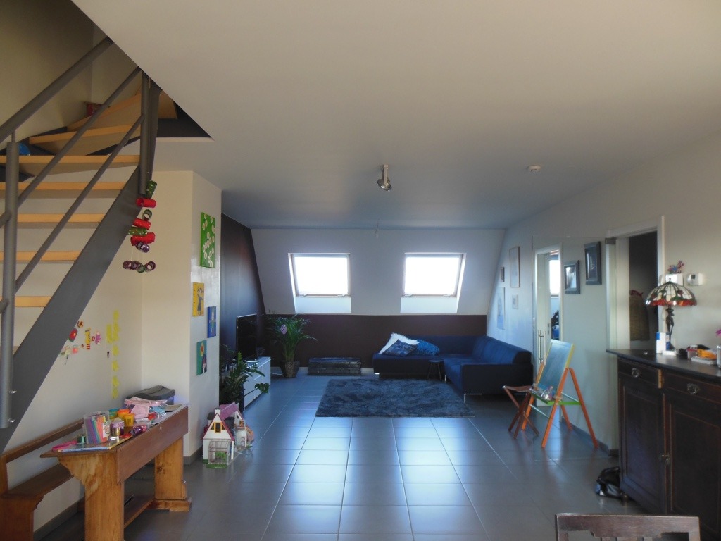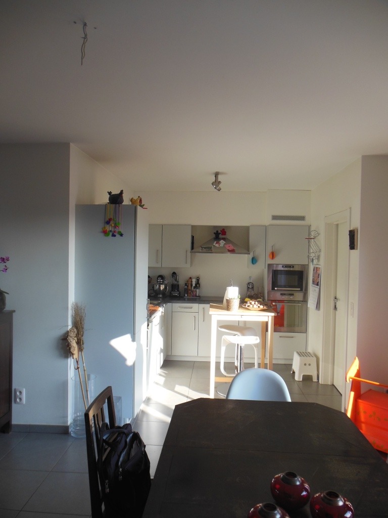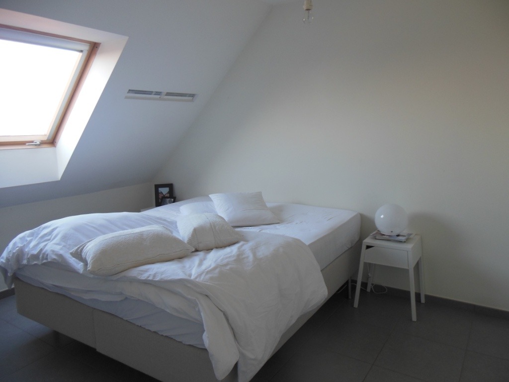 3de verdieping: inkomhal, apart toilet, leefruimte en eetplaats (één grote ruimte met veel lichtinval), open en volledig geïnstalleerde keuken (kookplaat met dampkap, oven, microgolfoven, vaatwasmachine, koelkast, diepvriezer), mooi zonnig terras en 1ste slaapkamer.