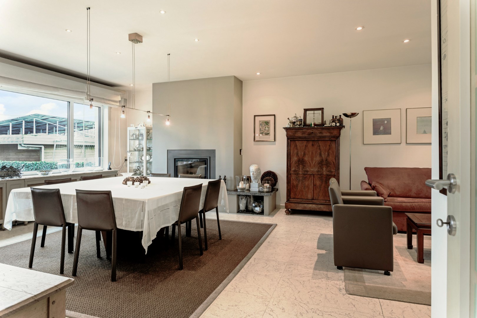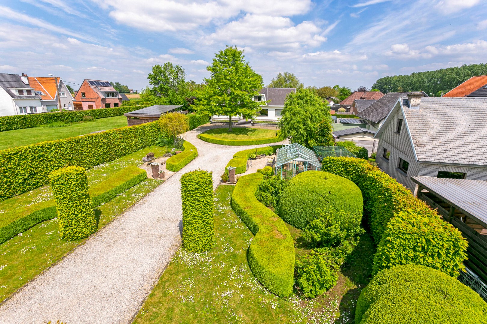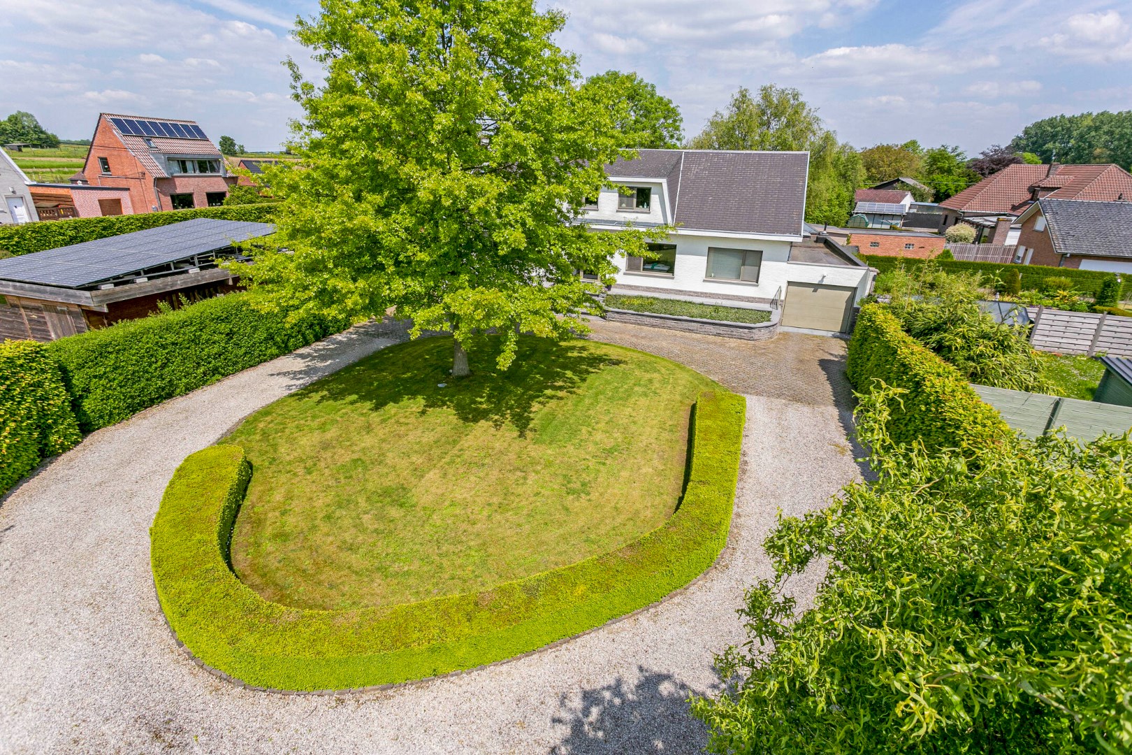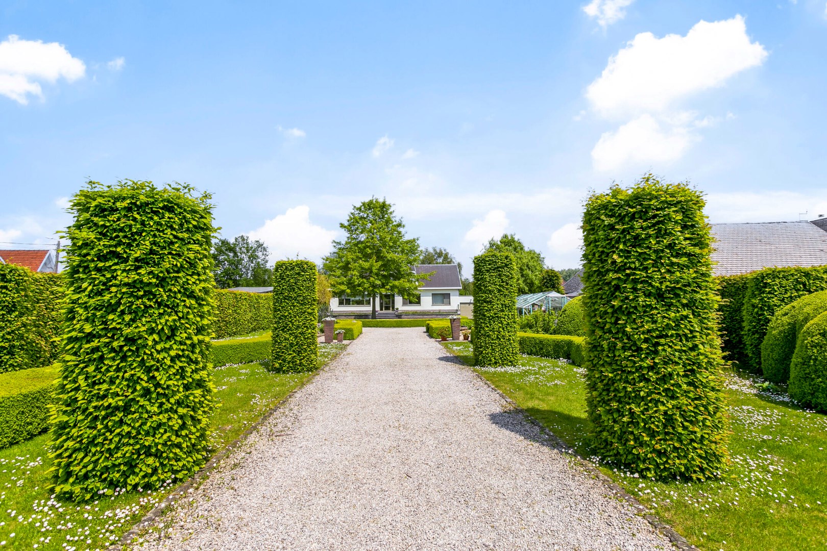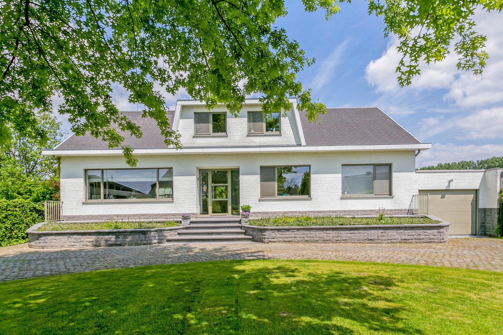 Van een indrukwekkende entree gesproken: van aan de straatkant kan je deze stijlvolle villa in het groen, op een steenworp van het Kasteel van Imde en met een vlotte verbinding naar de A12, maar net zien liggen aan het einde van een lange, mooi omkaderde oprit. Een ontvangst met stijl voor bezoekers of klanten. Want inderdaad, dit pand verleent zich zeker ook voor een vrije beroeper.