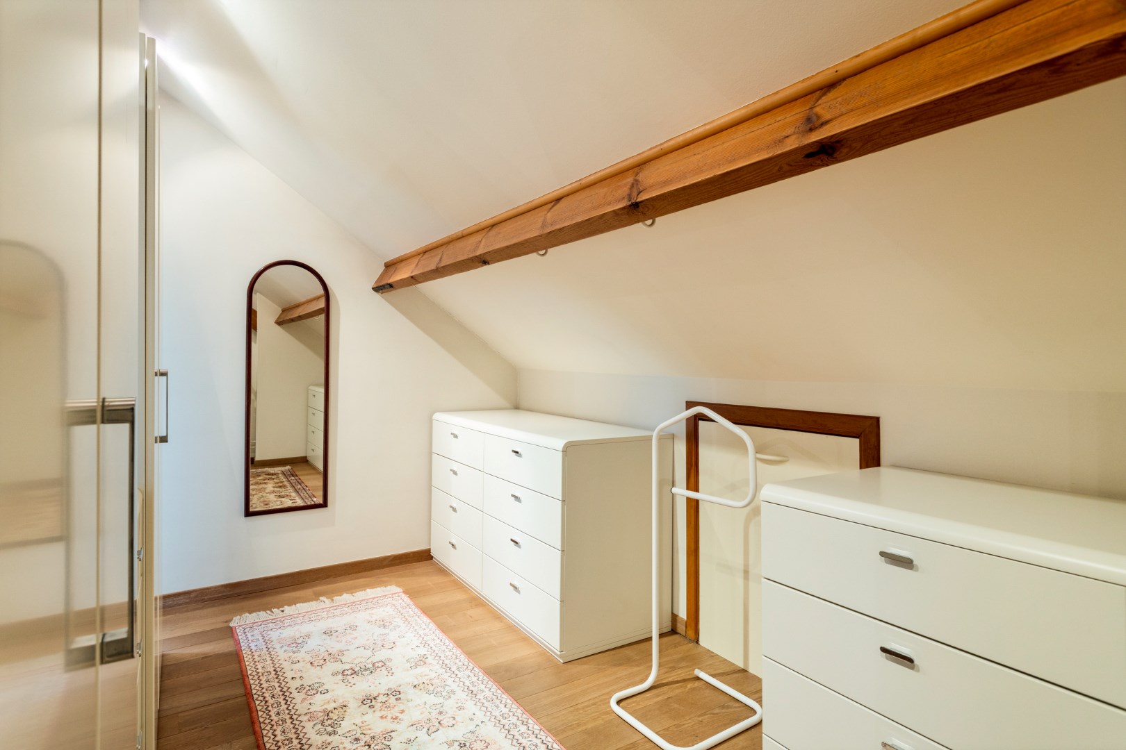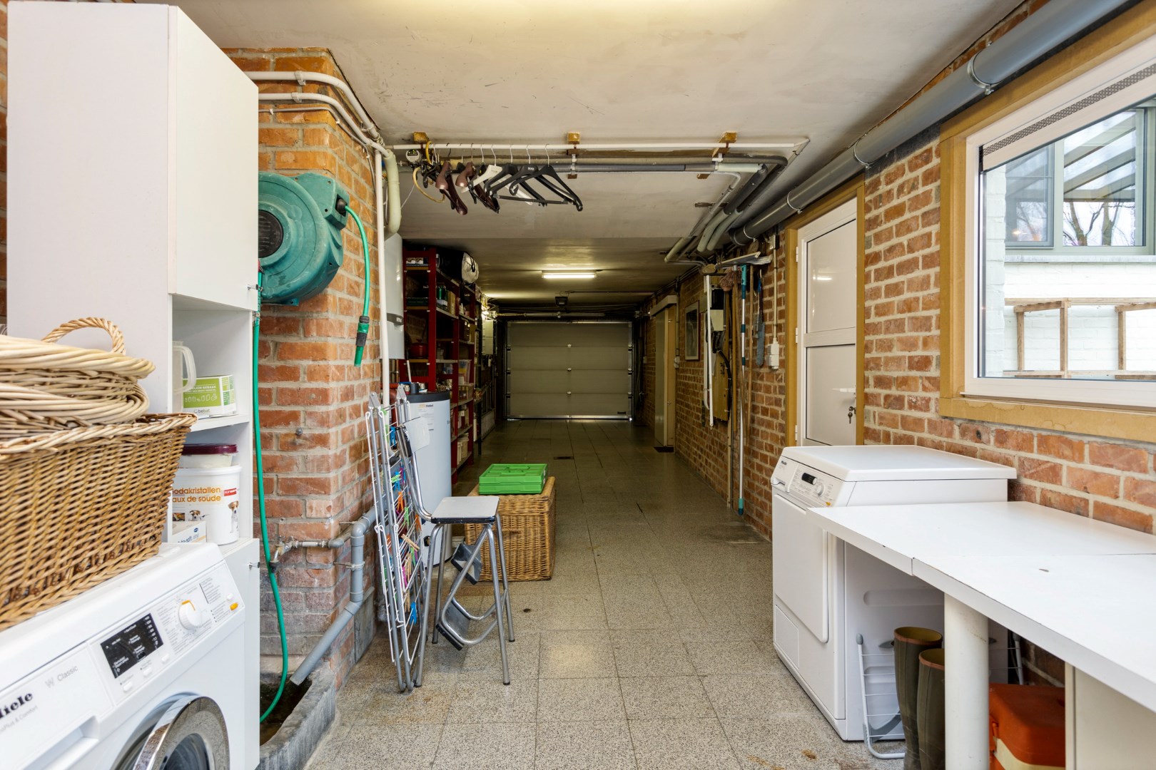 Bovenop een ruime afgesloten garage naast het huis, met ook een rechtstreekse toegang tot het woongedeelte en de tuin, is er dan ook plaats voor bezoekers om op het domein te parkeren.