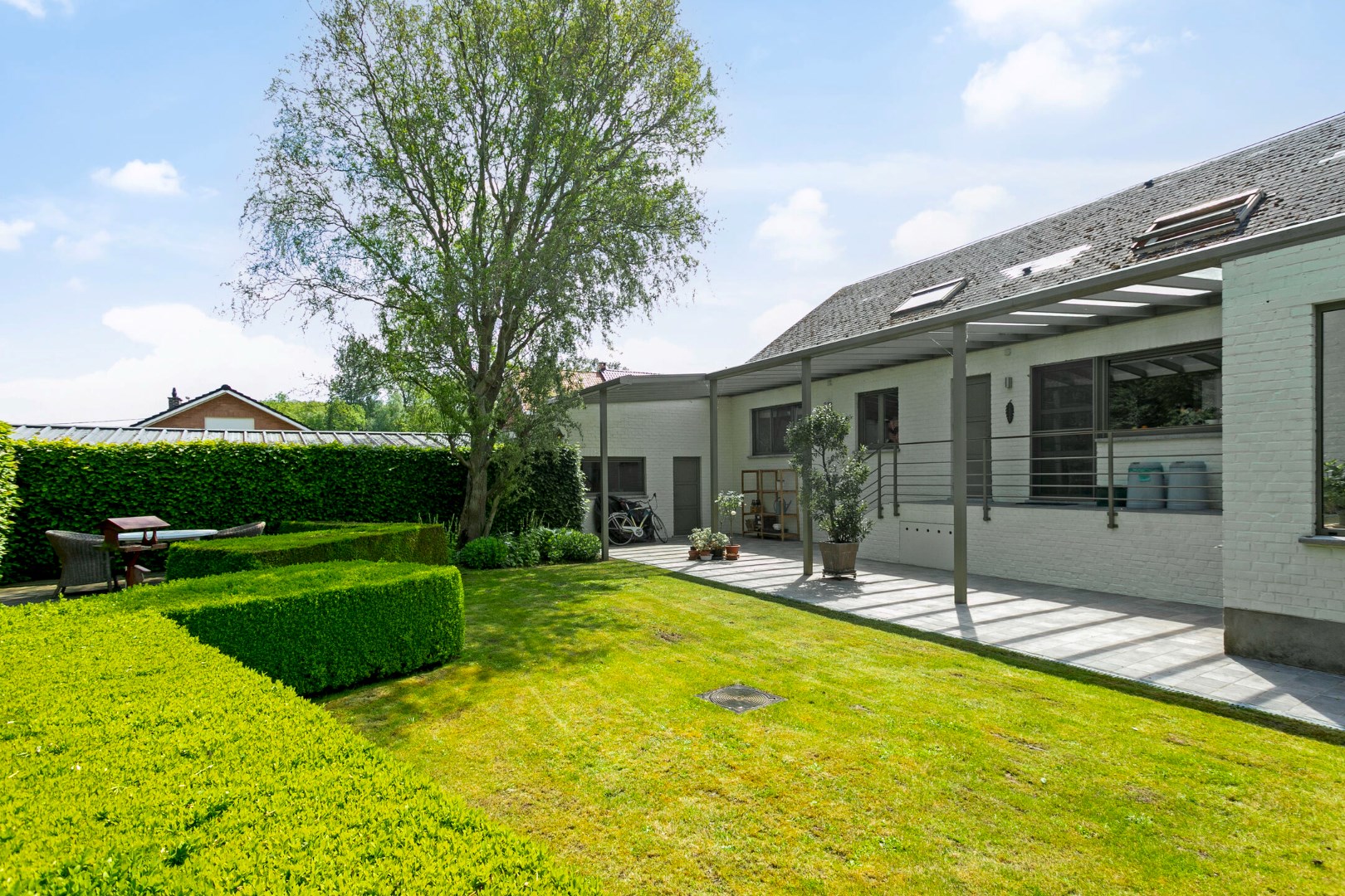De ligging diep in het perceel zorgt voor rust en geborgenheid, en ook voor een bijzondere atmosfeer: stijlvol en discreet, afgeschermd maar ook verwelkomend.