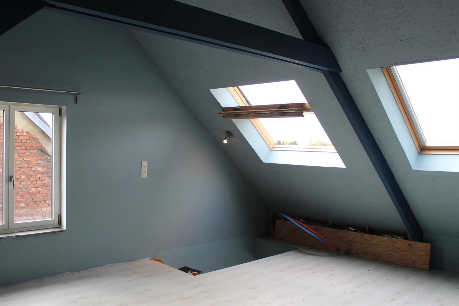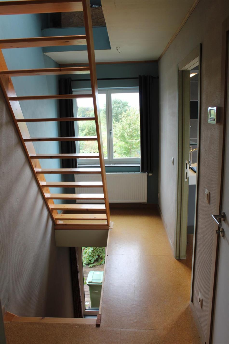 Ruime 2de slaapkamer op de 2de verdieping met mooi zicht op groen.
