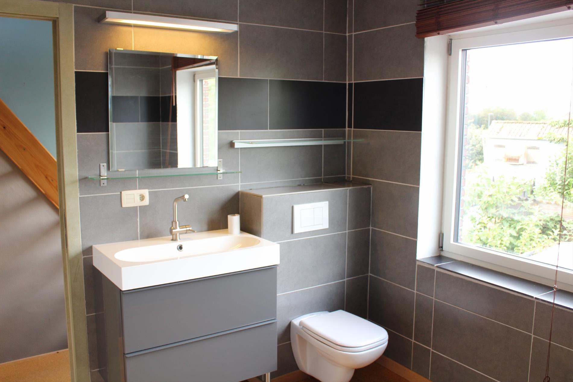 1ste verdieping: slaapkamer, badkamer (ligbad, inloopdouche, lavabo, toilet) en technische ruimte (ventilatiesysteem).