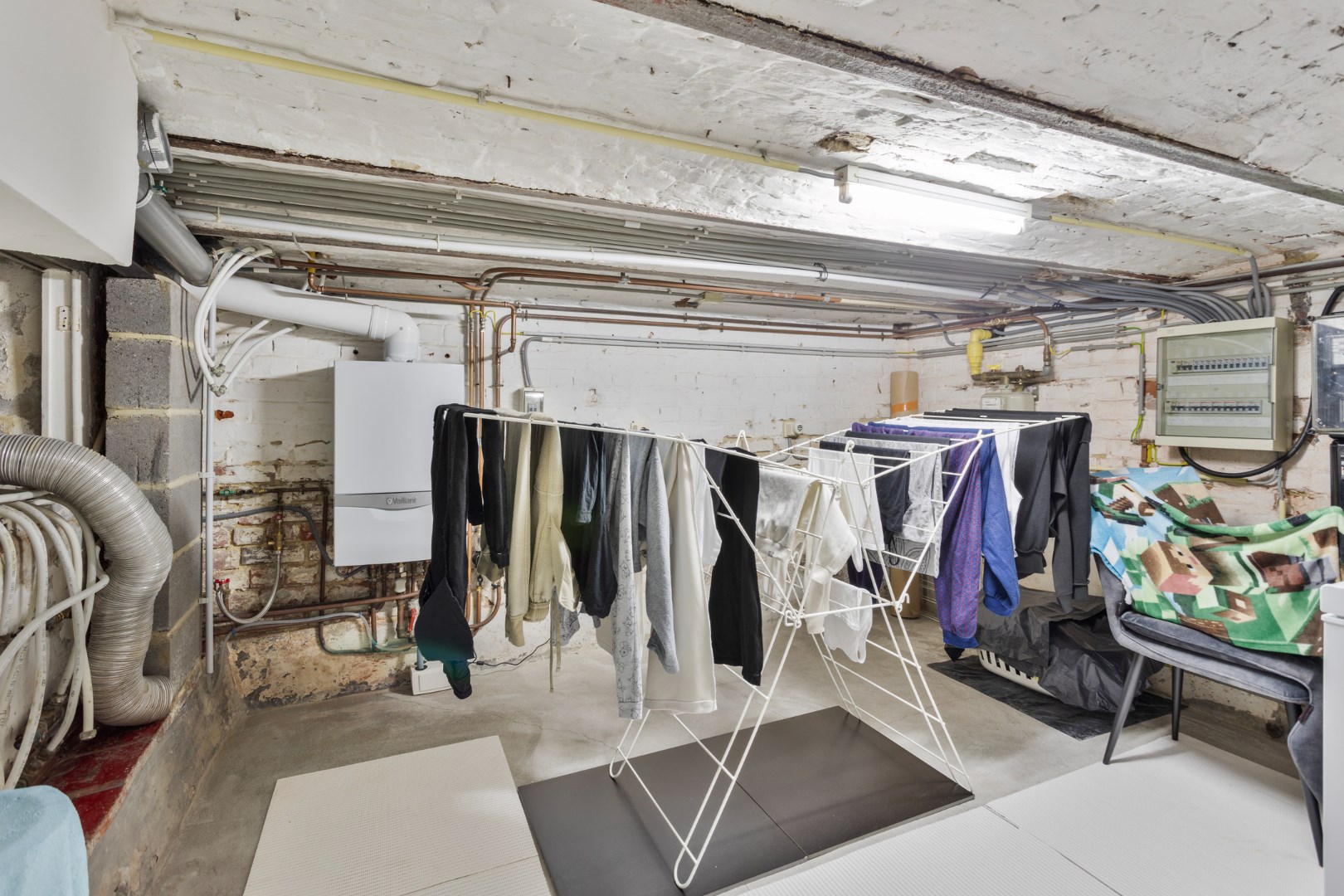 Centrale verwarming op gas. EPC-score 430 kWh/m2jaar (label G). Elektriciteit is niet conform.