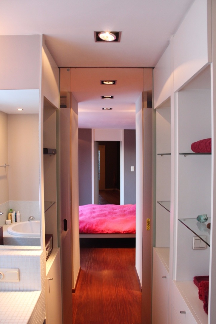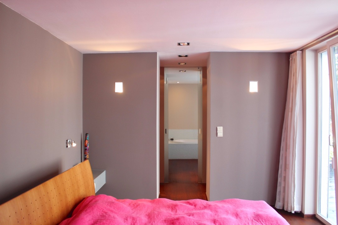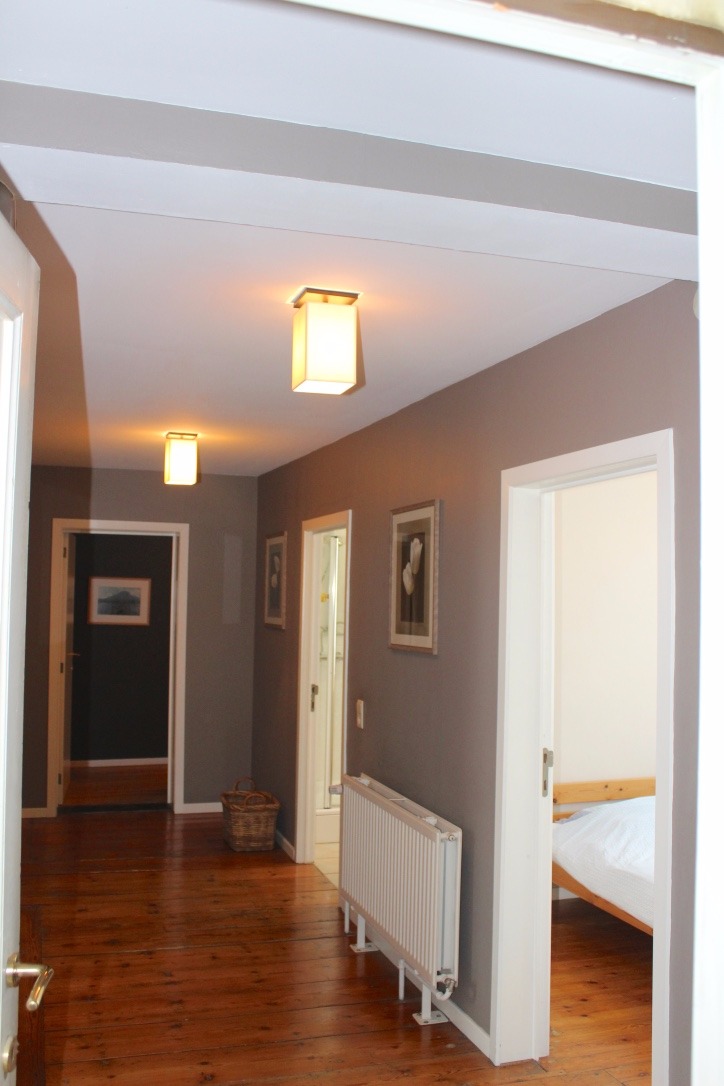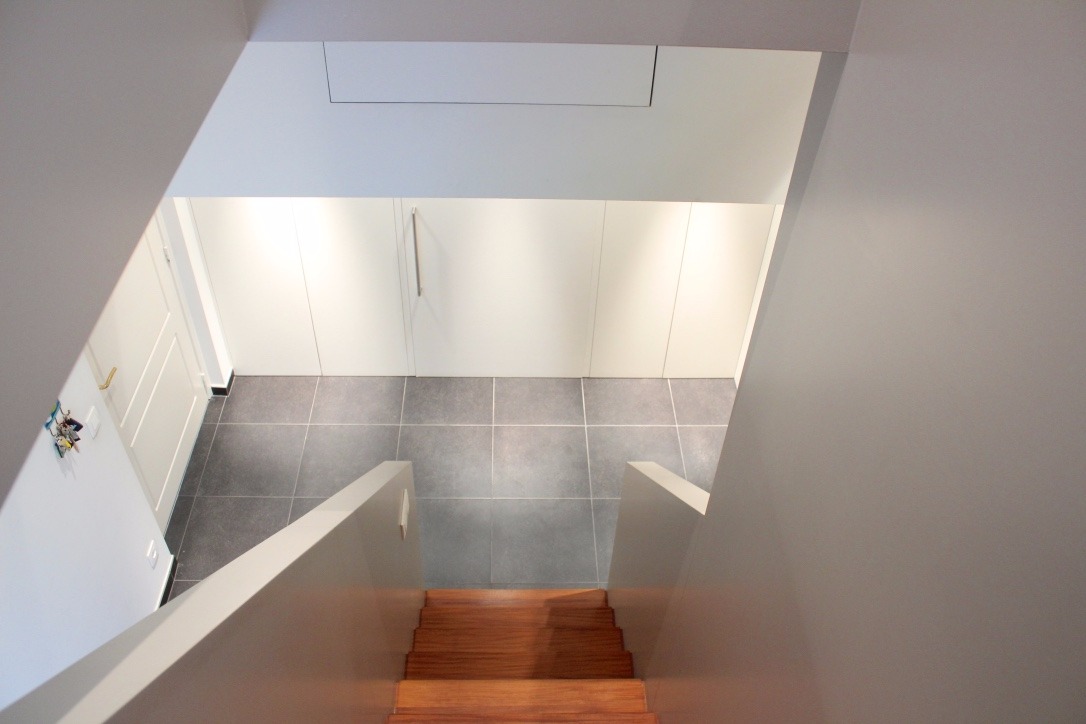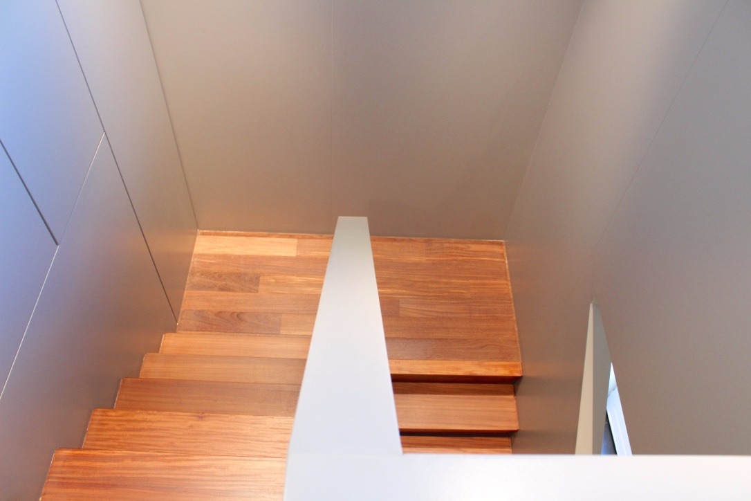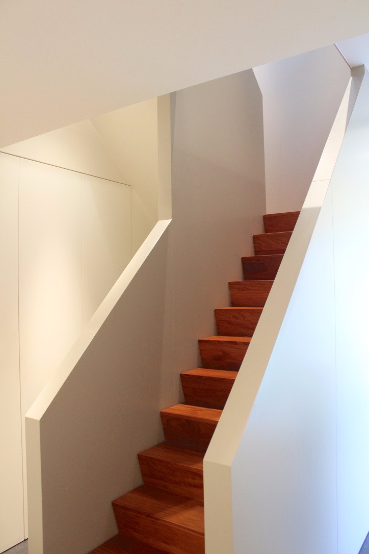 Deze trap leidt naar de master-bedroom met privé-badkamer en dressing.