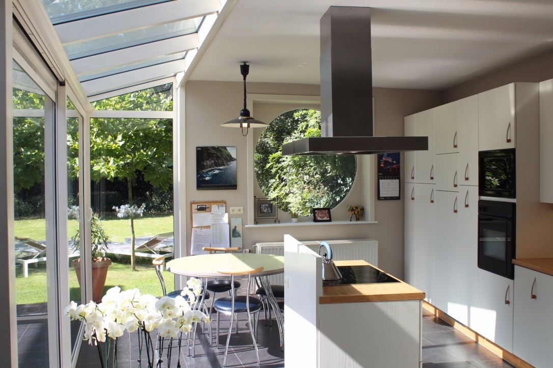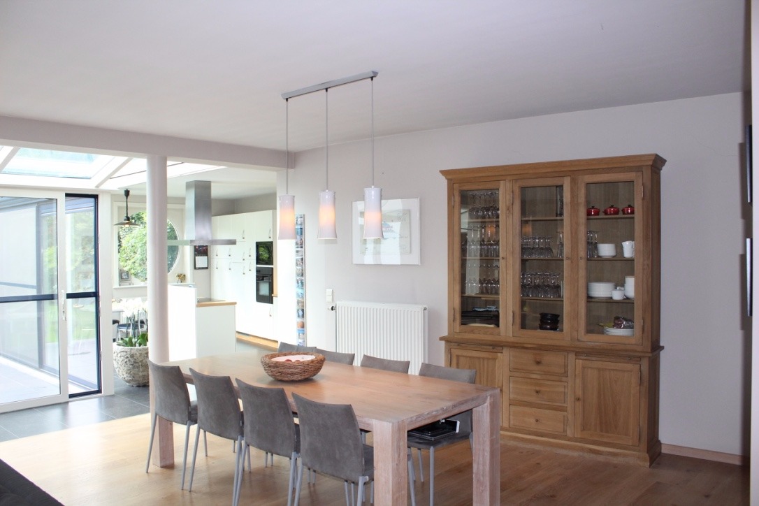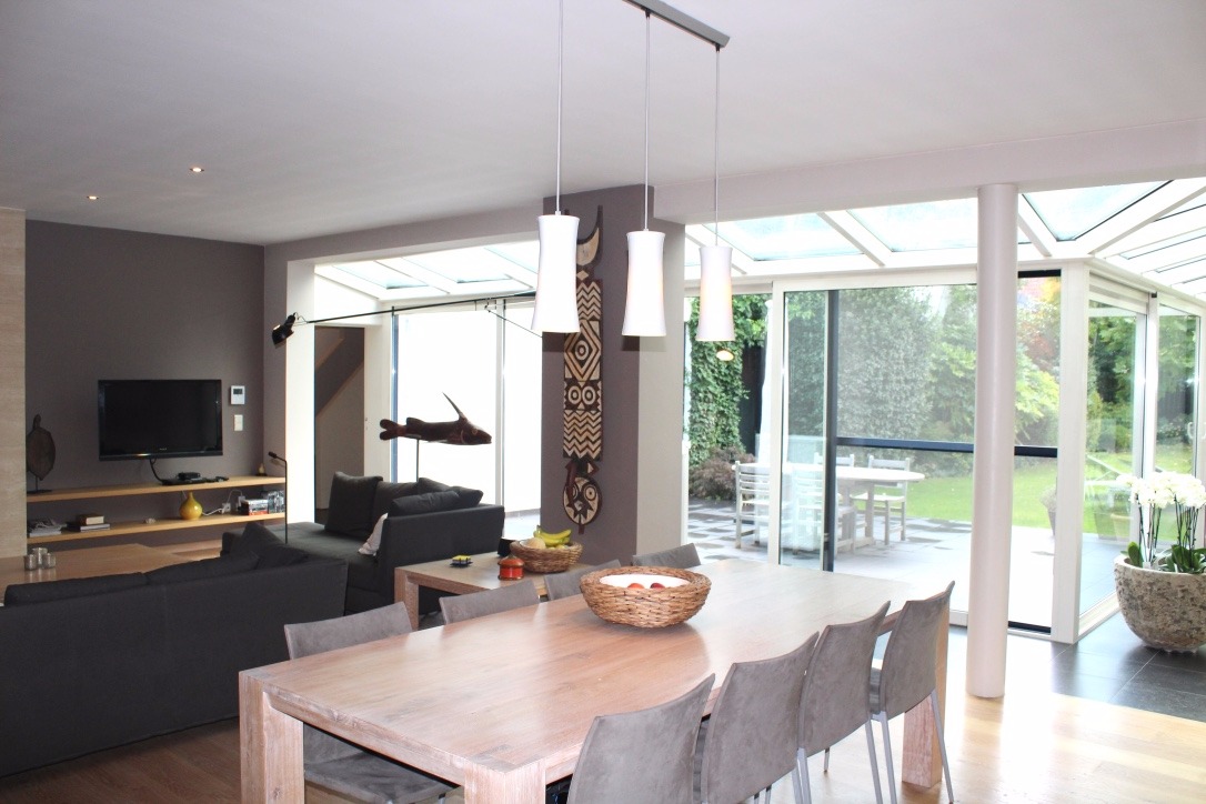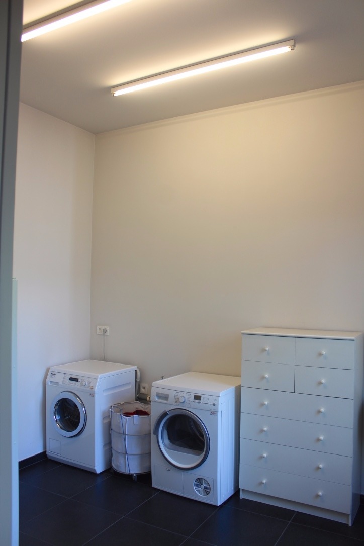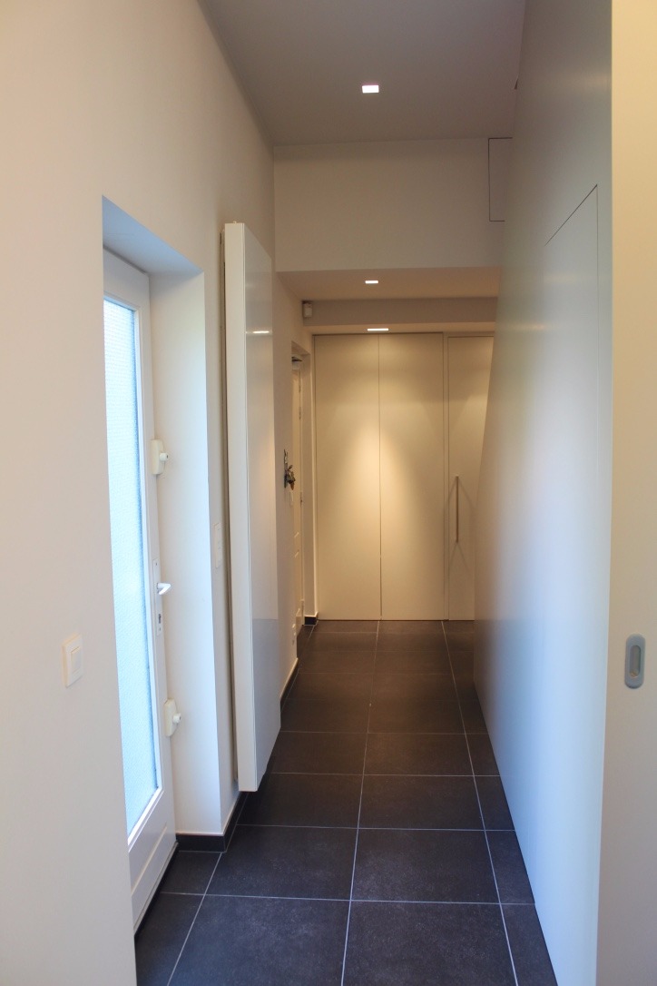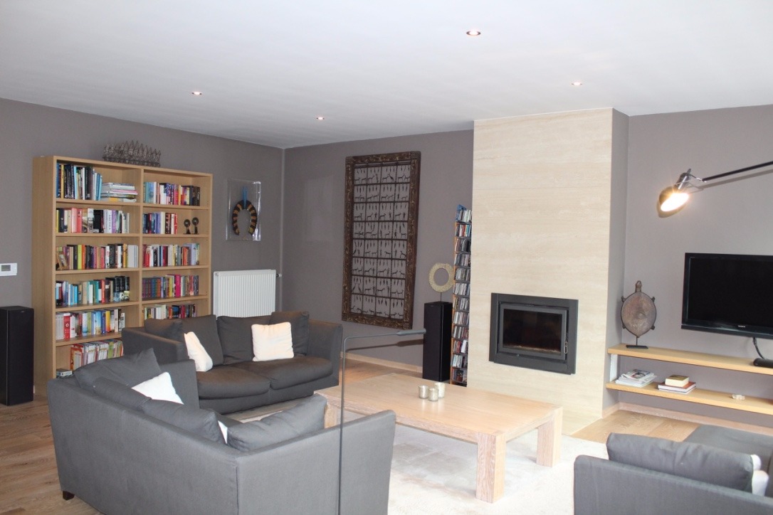 Recent vernieuwde aanbouw, waarvoor beroep gedaan op professionele interieurarchitecten, met traphal, wasruimte en lounge op de 1ste verdieping, volledig en alweer tot in de puntjes afgewerkt met degelijke ingemaakte kasten.