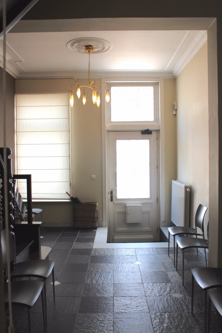 Uitnodigende en riante inkomhal, multifunctionele ruimte, die momenteel gebruikt wordt als praktijk. Deze ruimte kan echter tal van andere functies invullen: kantoor, horeca, vrij beroep of plaatselijke handelszaak, alles is mogelijk dankzij de centrale en commerciële ligging van dit pand.