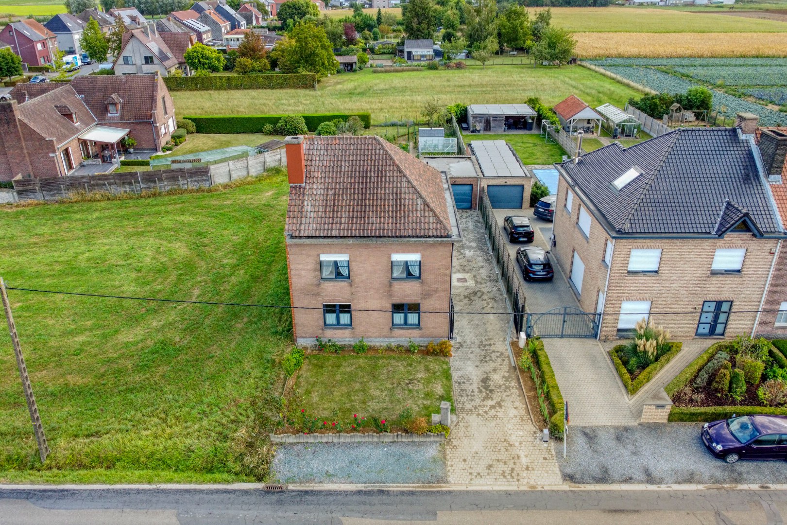 - Gelegen in agrarisch gebied met stedenbouwkundige vergunning (huis en garage, 1979) + verkavelingsvergunning,